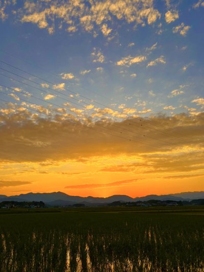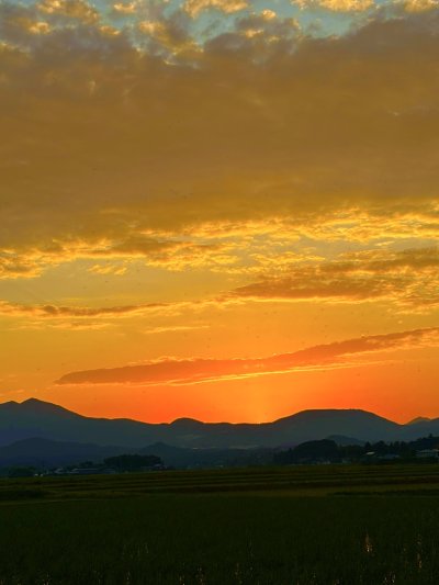 仕事終わりの帰り道… 空を見上げたら 目に飛び込んできたのは "オレンジ” 色に 染まった きれいな夕焼け 思わず『わぁ〜』と声が 漏れてしまうほどの 美しさ 疲れがふっと軽くなったような気がしました あっという間に 夕陽は落ちて 山のシルエットに変わり 空が静かに今日を終わらせようとしてました なんだか 一日の 素敵な エンドロールを 見た気がしました 明日も頑張ります٩(^‿^)۶