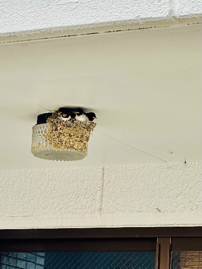 5月半ば、ご近所の軒下にツバメが巣を作り始めたのを見つけました。